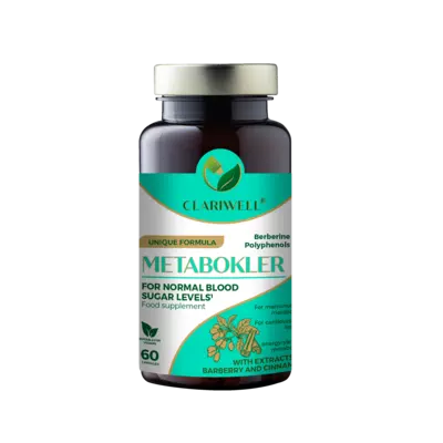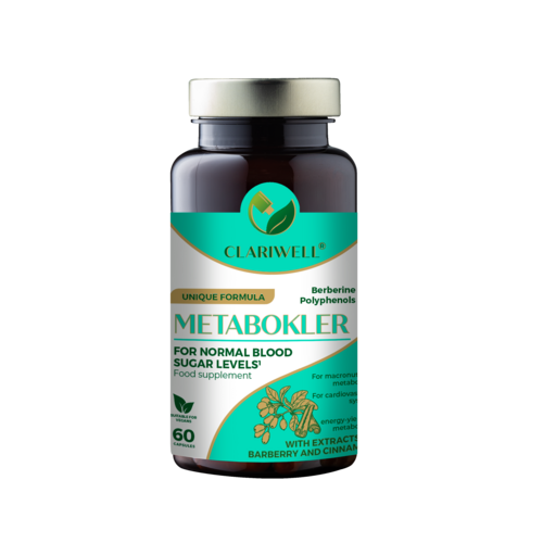 CLARIWELL® METABOKLER unique formula with Indian barberry, Ceylon cinnamon, L-arginine, chromium and thiamine (vitamin B1) helps maintain normal blood glucose levels and promotes normal cardiovascular and liver function.