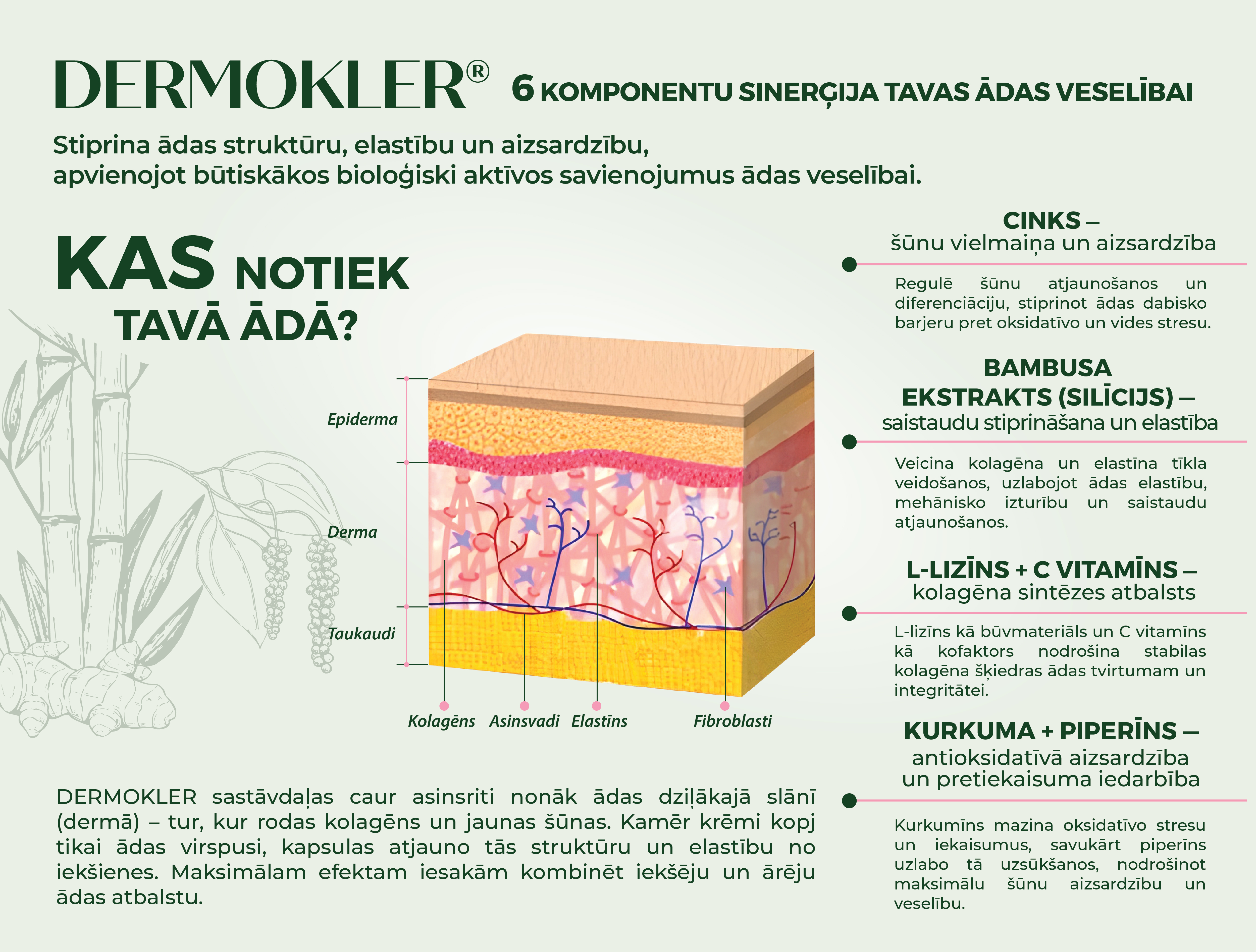 - Kādas ir galvenās DERMOKLER sastāvdaļas un kā tās darbojas?