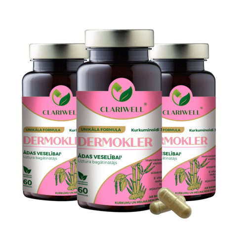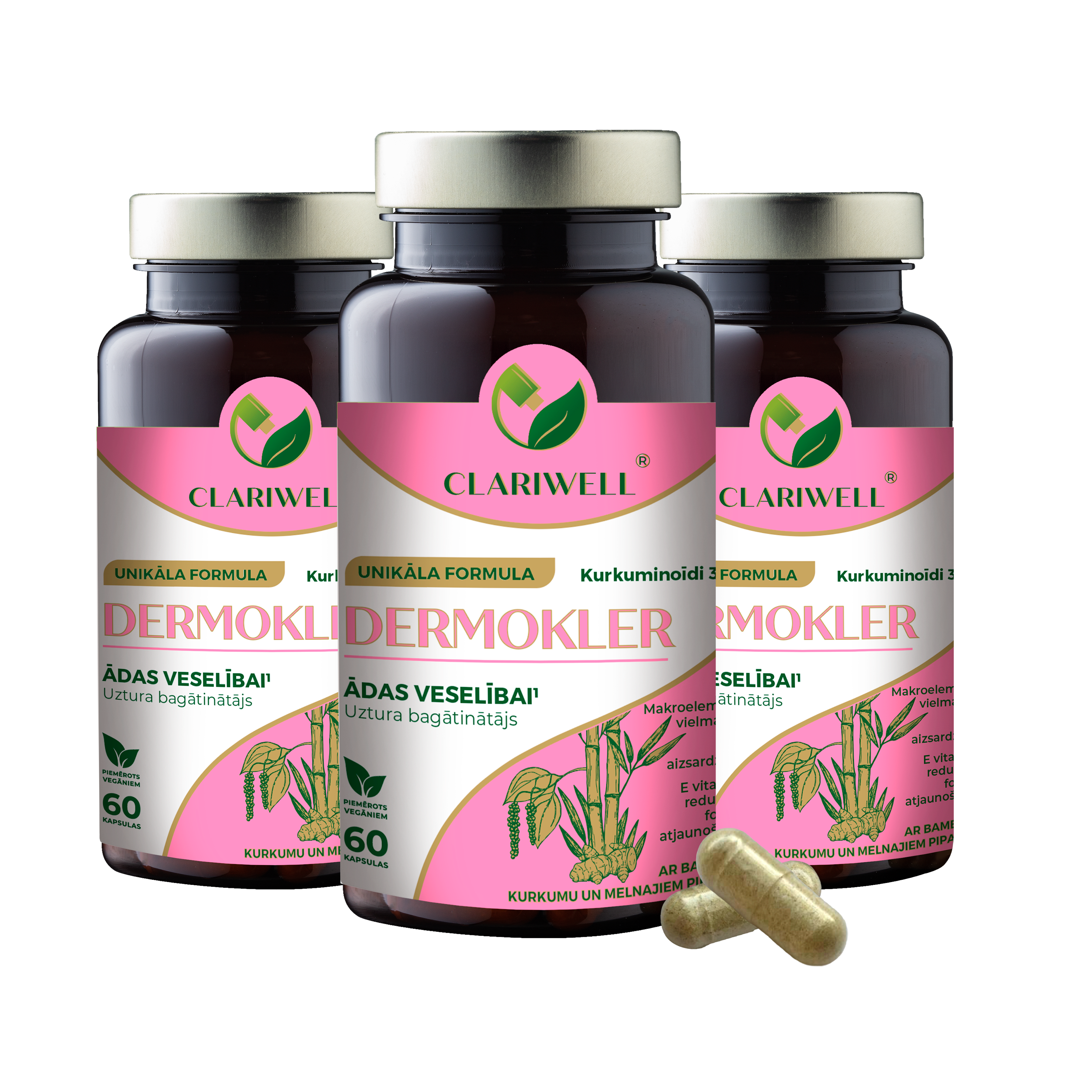 DERMOKLER ir uztura bagātinātājs ādas veselības atbalstam. Lietojot iekšķīgi, aktīvās vielas nonāk asinsritē un audos (tai skaitā dermā), kur tās veicina kolagēna sintēzi, atbalsta saistaudu struktūru, samazina oksidatīvo stresu un veicina ādas reģenerāciju.