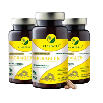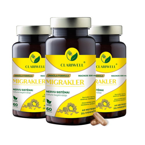 CLARIWELL® MIGRAKLER pilns kurss ir piemērots cilvēkiem ar migrēnu vai atkārtotām galvassāpēm, kuri meklē profilaktisku, nevis tikai īslaicīgu risinājumu. Produkts nav paredzēts akūtas lēkmes pārtraukšanai, tāpēc pilns kurss ļauj daudz labāk novērtēt, vai samazinās galvassāpju biežums un diskomforts.